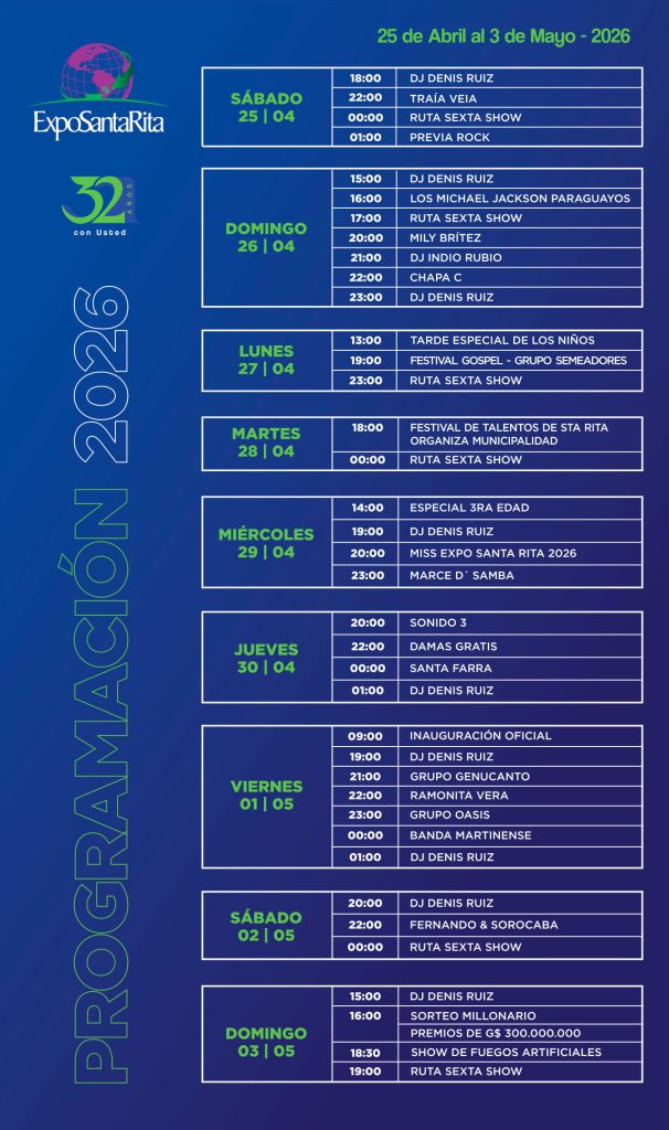 Programación Expo Santa Rita 2026 No esperes másInvolúcrate con Expo Santa Rita hoy mismoContacta con nosotros para conocer más sobre cómo puedes formar parte de este gran evento.Descubre más